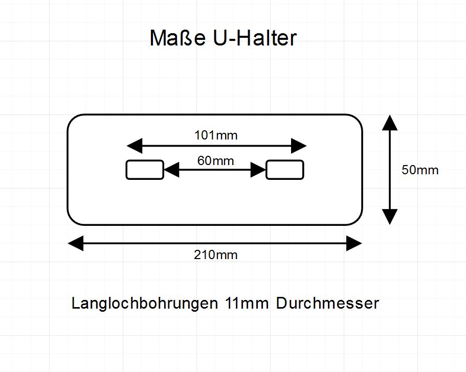 - Abmessung U-Halter: Länge 210 mm, Breite 50 mm, Höhe 80 mm